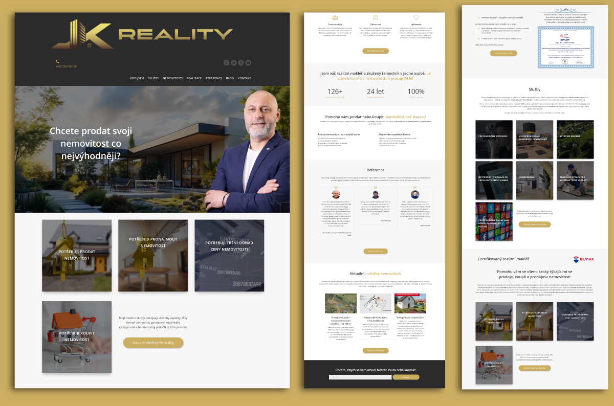 Pro realitního makléře Josefa Kazdu jsem připravila redesign webových stránek, jehož cílem bylo vytvořit moderní a přehlednou online prezentaci, která lépe vystihuje charakter jeho práce a usnadňuje klientům orientaci v nabízených službách.